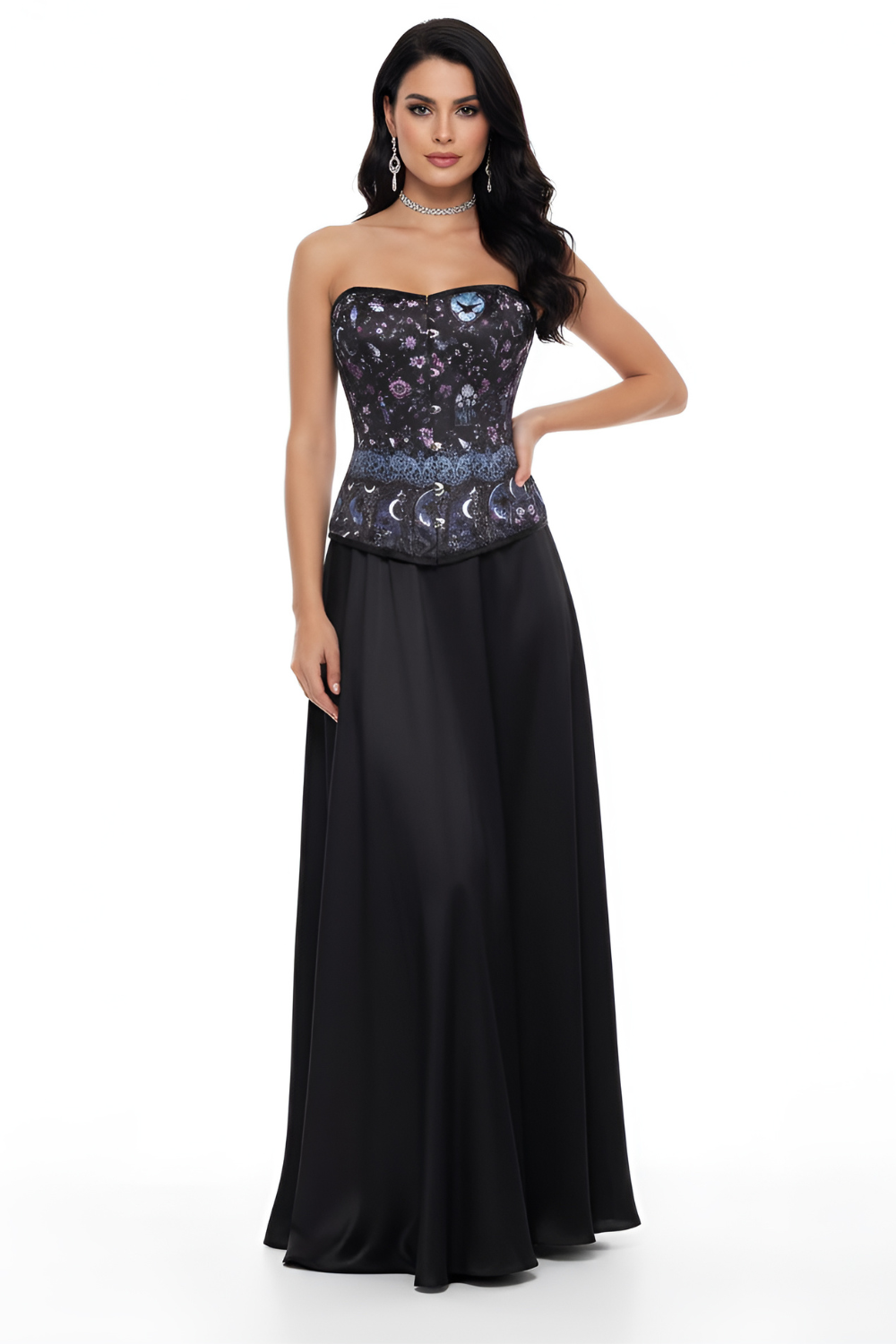 Expertly crafted with Gothic Enchantment print and sturdy steel bones, the Moonlight Floral Overbust Corset promises a flawless hourglass figure and lasting support. Made with smooth satin fabric, this corset is the perfect addition to any formal or intimate occasion.