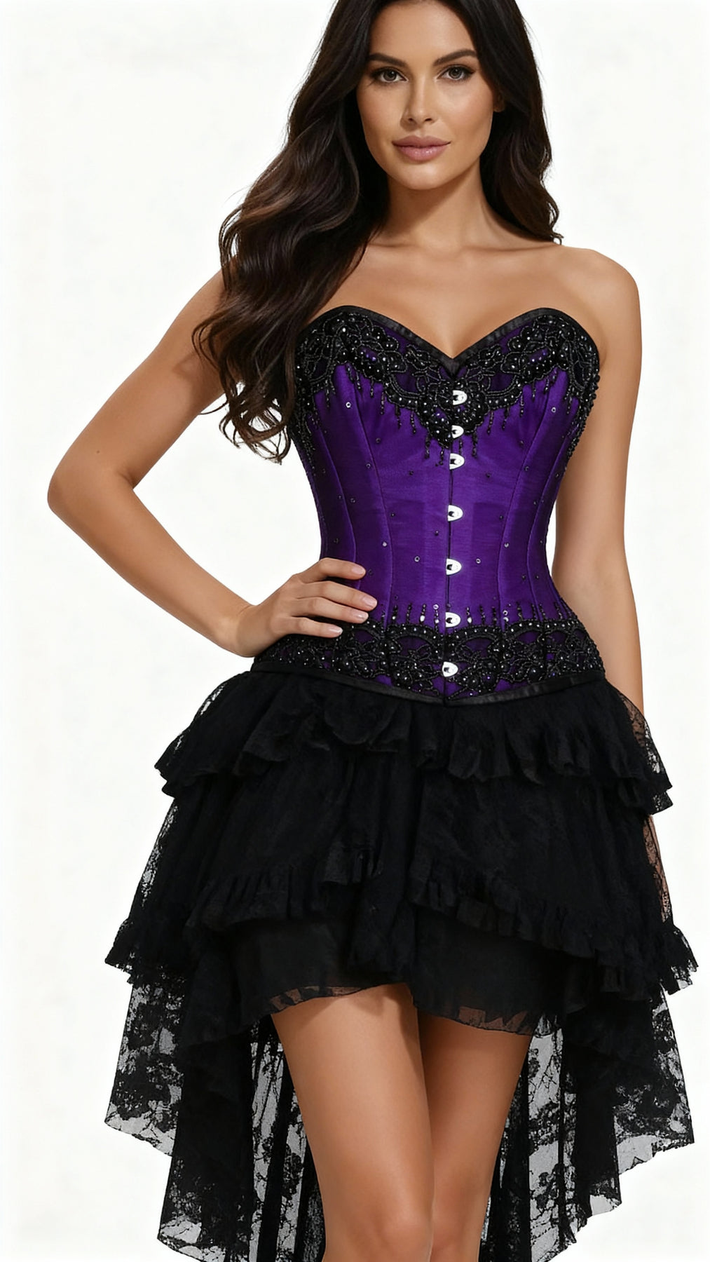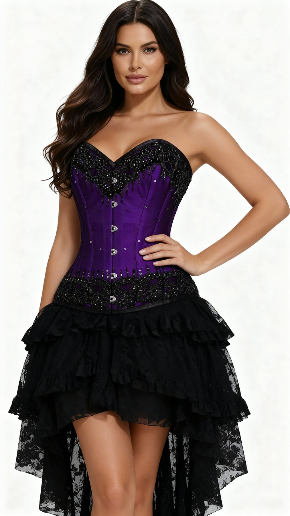 This visually opulent, hand embroidered 'Purple Couture Overbust Corset' is beautifully constructed to accentuate your natural curves. This instant shaper is highly recommended by Black Widow store employees. Currently this is on pre-order only for 2-3 weeks delivery.