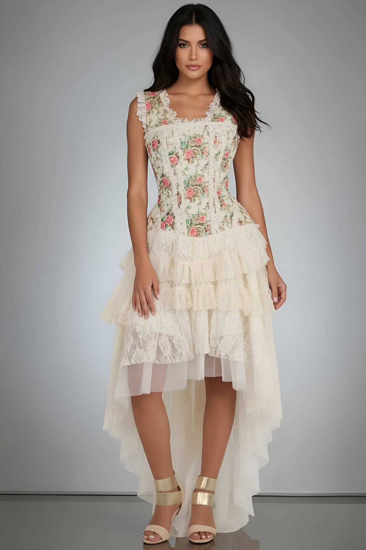 A Wonderfully designed luxury velvet floral corset dress for that really special occasion. Please note that sizes above 32 inches are available on a 2-3 weeks delivery.