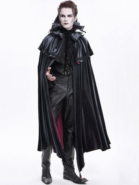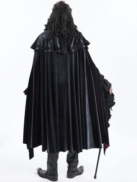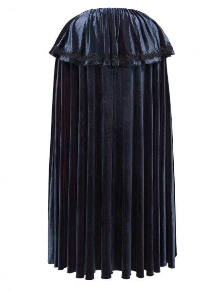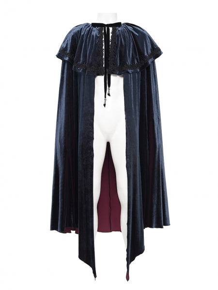 Blue Gothic Retro Embroidered Lace Irregular Long Velvet Cape for Men