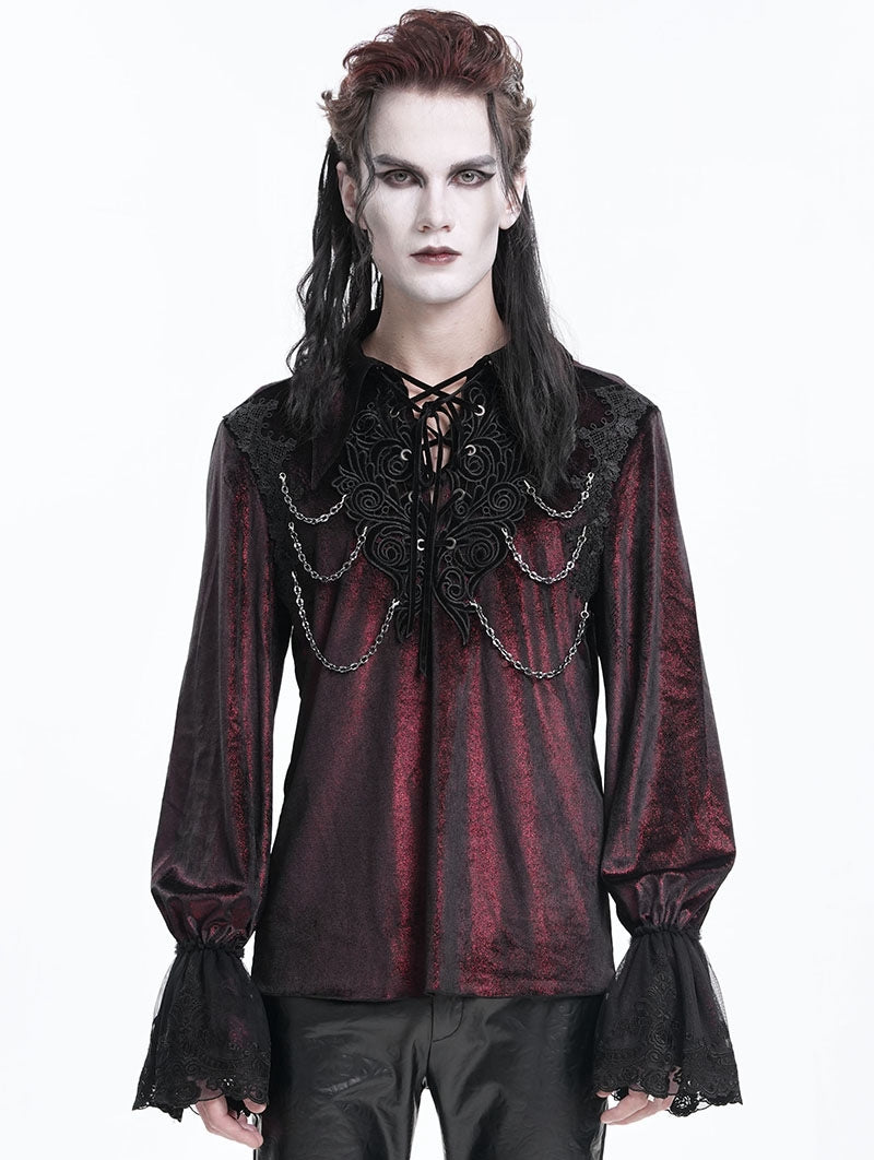 2.Lace-up neckline with embroidery applique.