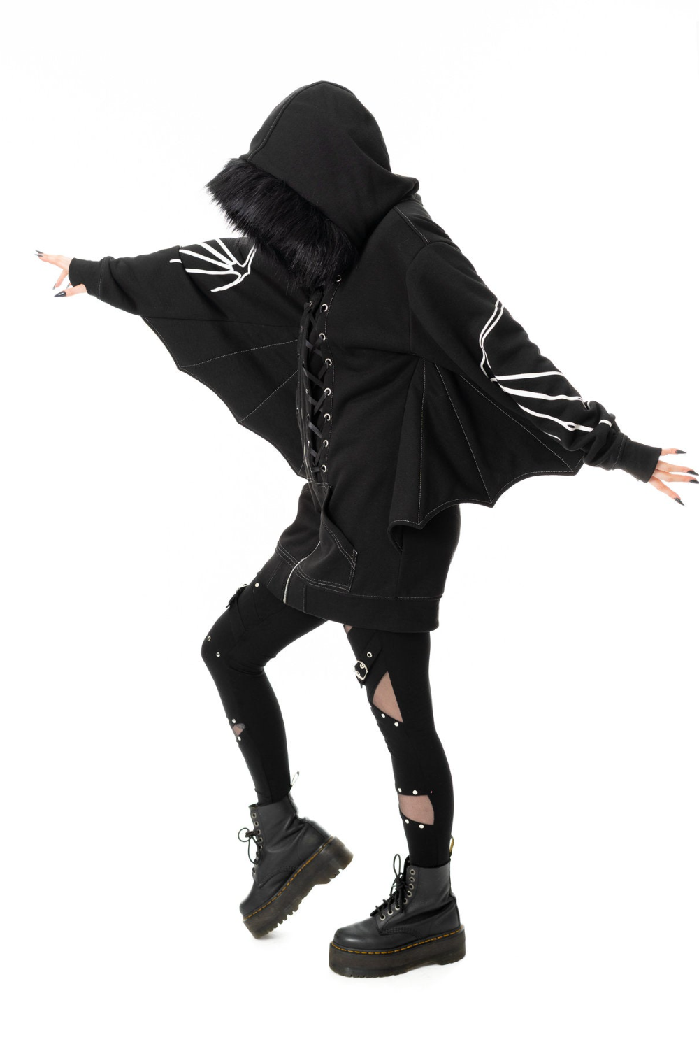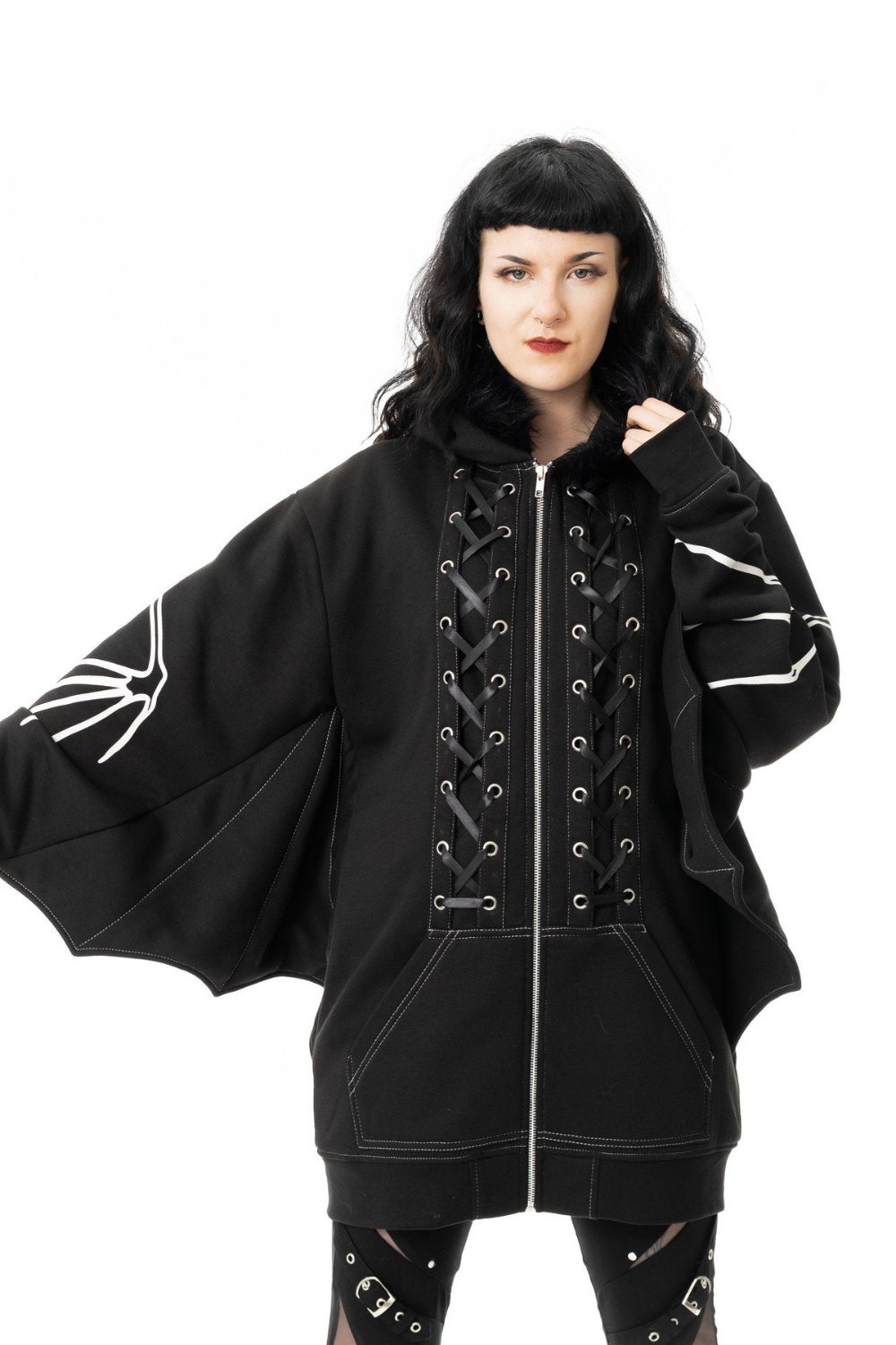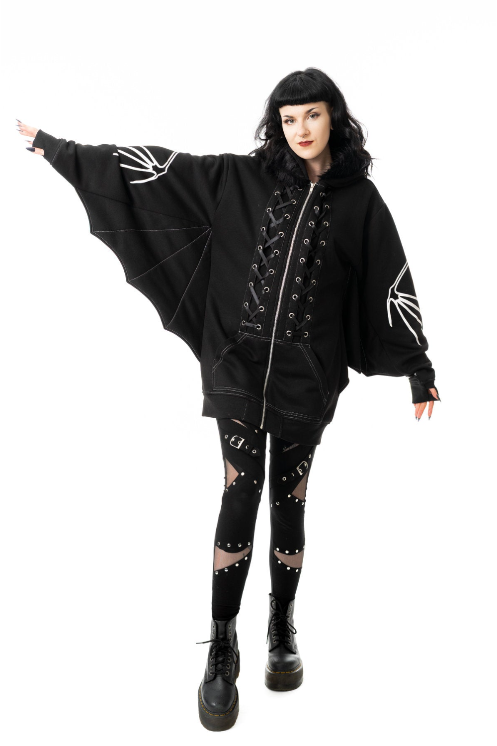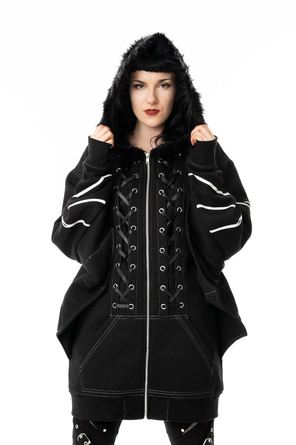 Fastened by a handy zip and features two long, vertical strips of criss-crossing laces for a unique and alternative look.